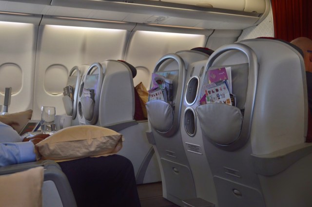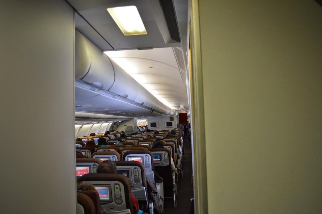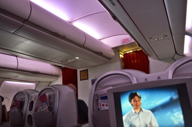 I was very impressed with the cabin crew, and can see why they were awarded ‘World’s Best Cabin Crew’ this year. My sister was sleeping at one point during the flight, and the stewardess unwrapped a blanket and placed it on her. A nice touch! Unfortunately on this flight, the crew did not refer to us by name, which was disappointing, considering this was a premium flight. They were all very friendly. I took a walk back to Economy at one point and was talking to the Economy crew. For some reason, they seemed a bit warmer and more welcoming than the Business crew. They were really happy for me to take photos of the cabin and of them! I just took a couple of cabin shots: