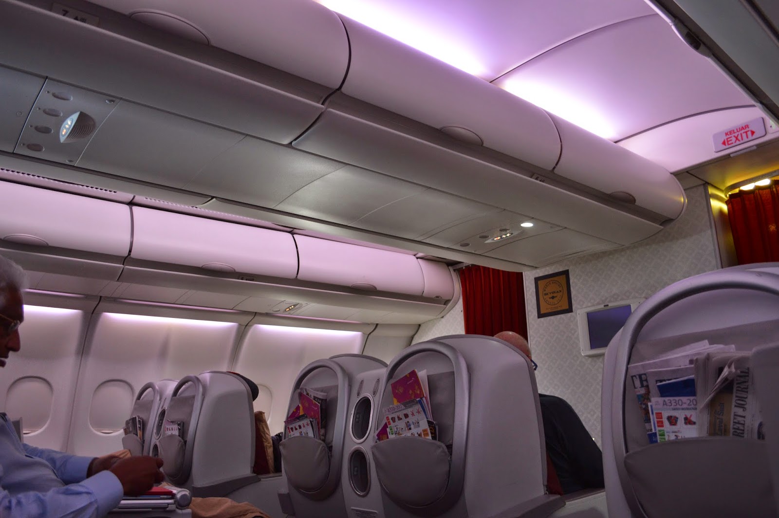 I love this subtle purple lighting. I’ve seen it on a few aircraft and somewhat prefer it to the more intense mood lighting on newer aircraft.