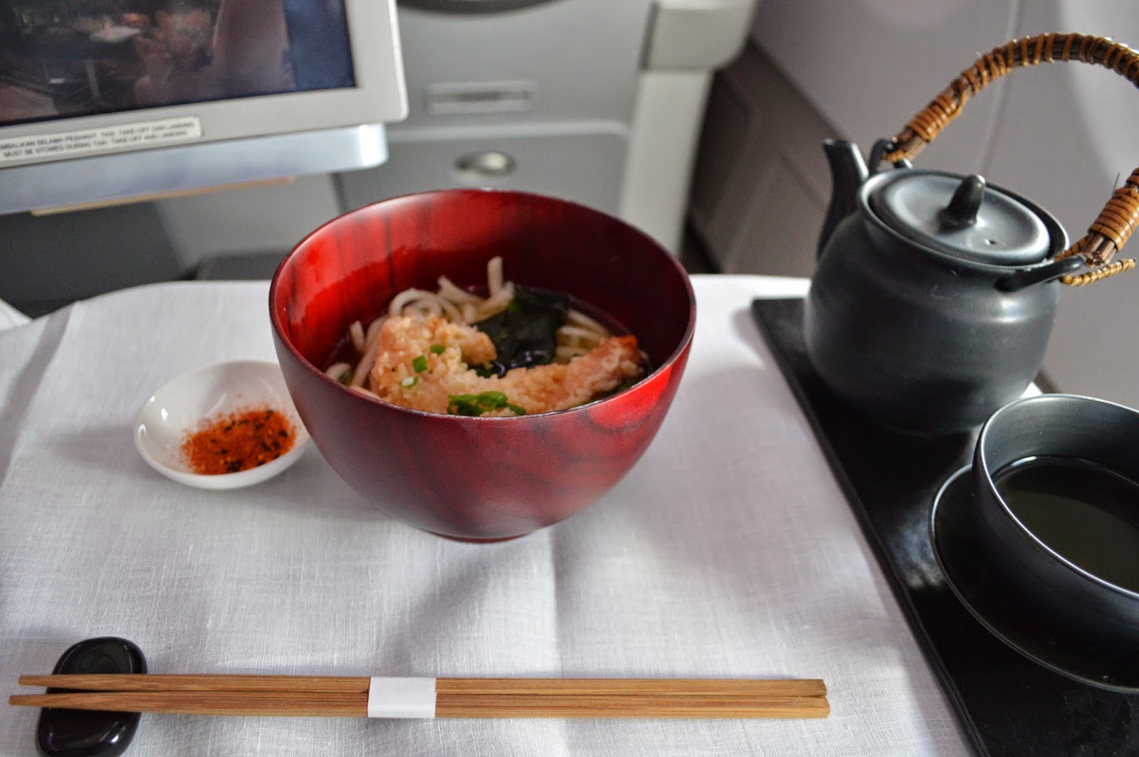 An hour and a half before landing, a refreshment was served. I decided to go for the Japanese selection this time, and so chose the Japanese Gyokoro Green Tea. It was served in lovely crockery, however the tea itself was really not that great! It tasted very artificial for some reason, but that’s just my taste!