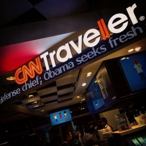The airport seemed so deserted. We very quickly passed through immigration and security formalities, and were soon in the departure hall. It is ridiculous how SMALL Terminal 3 is! There are a few duty free shops and restaurants, but it is actually a very, very small area. One of the wonderful things about the airport was the “CNN Traveller” café. It is the first one in the world, and caters to business travellers. The place is designed well with swivel and fold down chairs, providing the option to stand or sit. There are universal power points and USBs at every table, and most tables have a parabolic overhead speaker that plays the audio from CNN, which is displayed on incredibly large, high-definition screens around the restaurant. They offer a wide range of good quality food and drink as well. When we were at the café it wasn’t officially opened, and only properly opened on the 8th December.