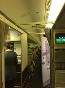 So after a few hours rest, the sun had risen and I went back to the rear galley to speak to the cabin crew. Two stewardesses and one leading stewardess (Lynn) were in the galley. I was travelling to Abu Dhabi for a special Formula 1 competition that I was involved in, and Lynn and the other crew were very interested to hear about it and see pictures. It’s always great when crew take an in interest in passengers’ travels. i also spoke to her about being cabin crew for EY. She said that when applying, you really need to sell yourself. Take professional photos of yourself in a suit, and present yourself well at the interviews. I hope to be cabin crew for a couple of years, and she said that she may be my interviewer in a few years! We talked for a while, and then she gladly made me hot chocolate and biscuits so I could rest. Excellent crew!