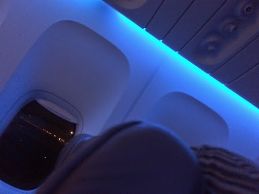 The cabin lights were soon dimmed to a lovely blue, and then switched off to allow passengers to sleep.